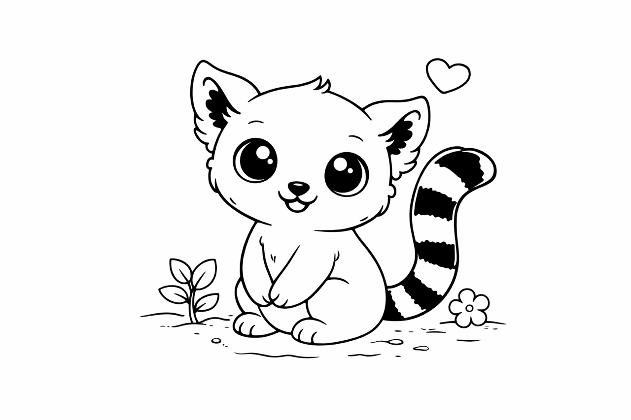 Ein Baby Lemur fasziniert durch seine groĂen Augen und den auffĂ€lligen Schwanz mit dunklen Ringen. Kinder entdecken beim Ausmalen ein exotisches Tier aus Madagaskar und können spielerisch ihre KreativitĂ€t entfalten. Das freundliche Gesicht macht das Motiv besonders beliebt.