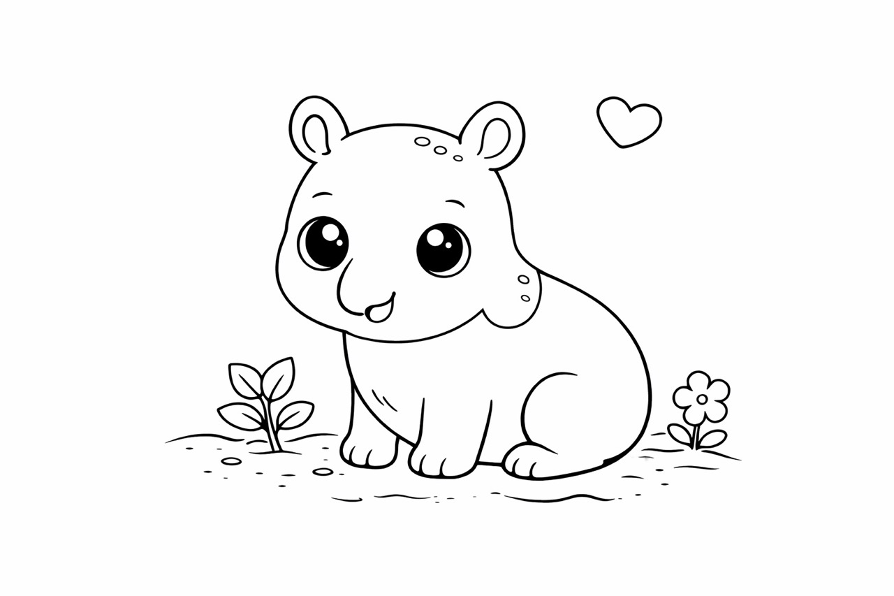 - SĂŒĂes Baby Tapir Ausmalbild â kostenlos drucken
