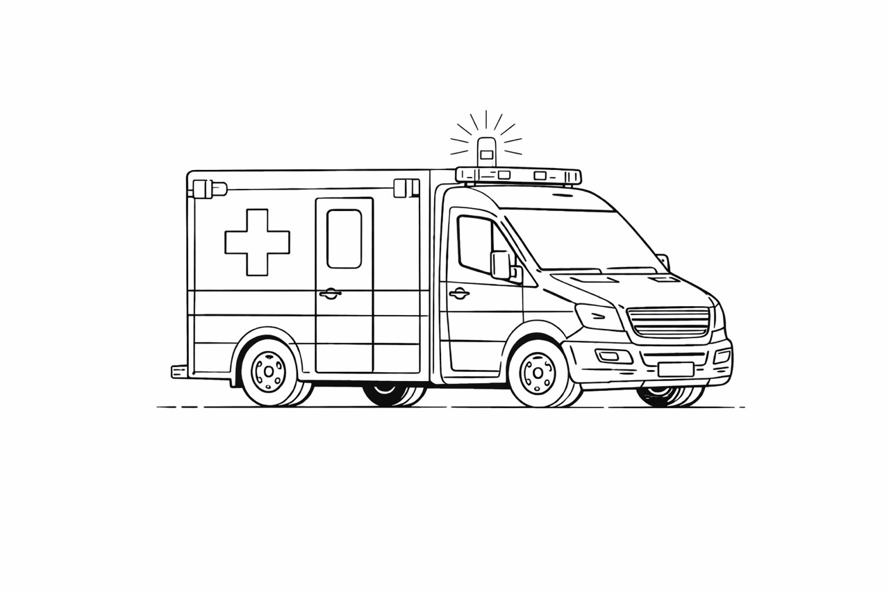 Lade dir jetzt das kostenlose PDF herunter und drucke das Krankenwagen Ausmalbild direkt aus.